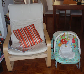 Esta semana não pude deixar de sorrir quando reparei neste cenário! Já não há só um cadeirão na nossa sala... agora há DOIS cadeirões!!! E o dela é muito mais divertido!